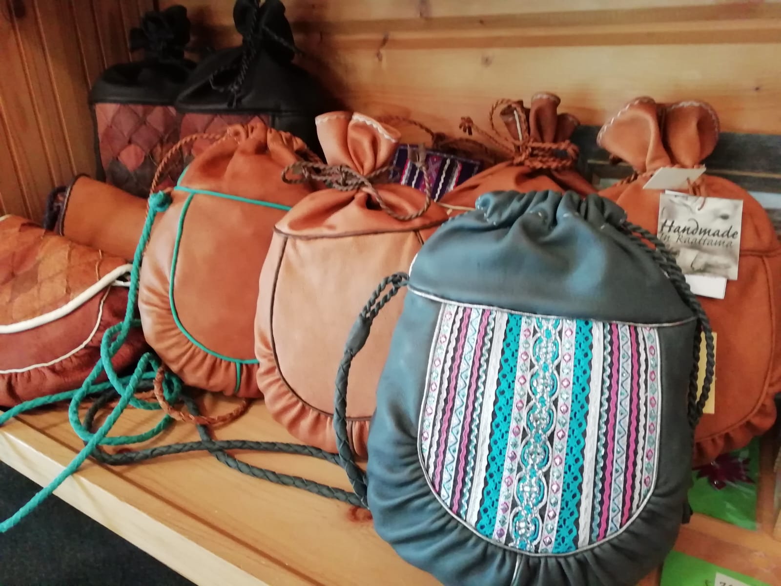 Käsityöläisten pöydiltä löytyy aitoa pohjoisen osaamista: poronnahkakoruja, porosäärystimiä hopeakoruja, huopatossuja, nahkatuotteita ja monenlaisia uniikkeja käsitöitä.