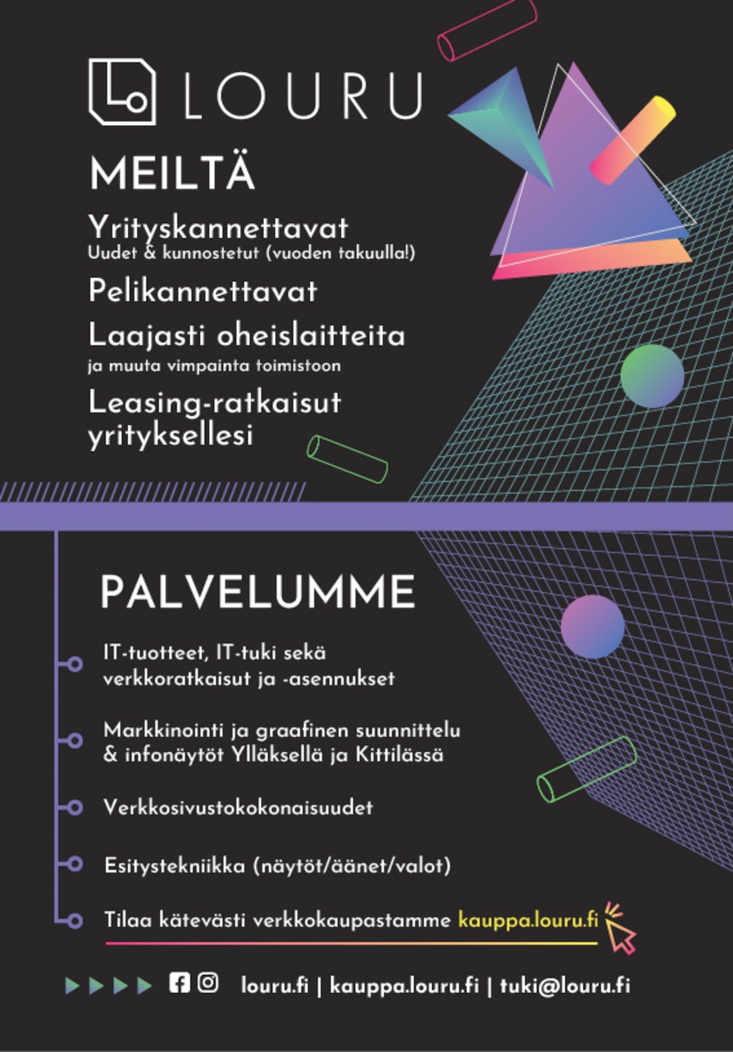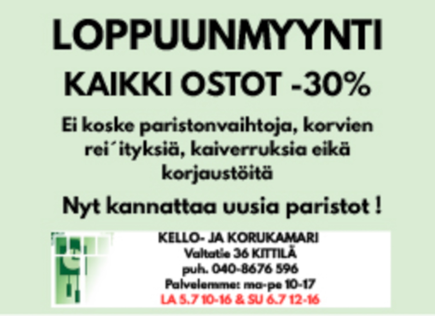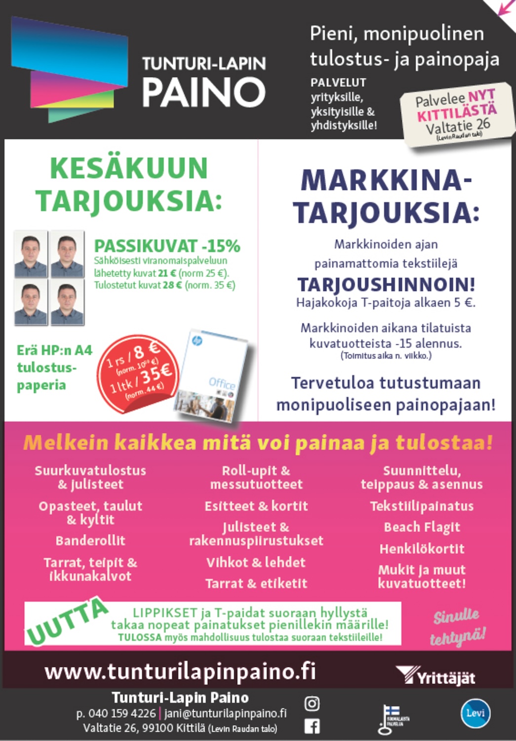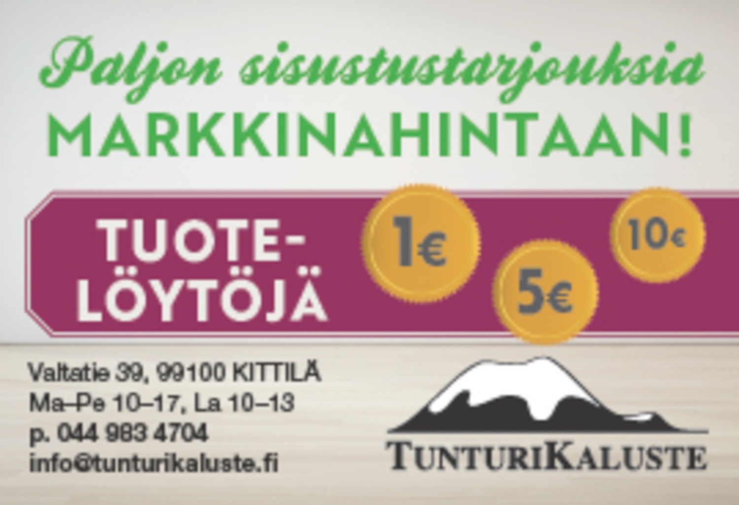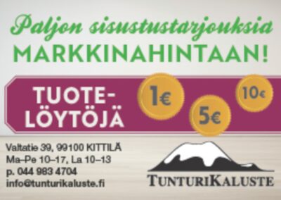 Kello- ja Korukamari, Levin Lemmikkitarvike, Louru, Lumitähti, Tunturi-Lapin Paino, Teboil Kittilä, Vihreä Ahma, TunturiKaluste.